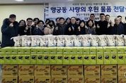 (누리일보) 수원시 팔달구 행궁동은 지난 6일 설 명절을 맞아 ‘행궁동 사랑의 후원 물품 전달식’을 개최했다. 이번 전달식에는 설 명절을 앞두고 행궁동 취약계층을 위해 후원 물품을 기부한 행궁동 주민자치회를 비롯한 단체장들과 후원자들이 참석해 이웃 나눔의 의미를 함께 했다. 행궁동은 설 명절 이웃돕기를 위해 2월 5일까지 후원 물품을 접수한 결과 종교기관과 개인 후원자, 기업 등의 참여로 백미 10kg 200포와 라면 등 120박스를 후원받았다. 후원 물품은 관내 복지사각지대 및 저소득 가정에 전달될 예정이다. 전달식에 참석한 박영순 주민자치회장 등 행궁동 단체장들은 “명절마다 이어지는 나눔이 어려운 이웃에게 작은 위로가 되길 바란다”며 “앞으로도 지역사회 나눔 문화 확산에 적극 동참하겠다”고 전했다. 최영희 행궁동장은 “설 명절을 맞아 따뜻한 마음으로 후원에 동참해 주신 분들게 깊이 감사드린다”며, “지역의 소중한 복지자원과 이웃에 대한 관심이 촘촘한 복지행정을 실천하는 큰 힘이 되고 있으며, 후원해 주신 물품은 도움이 필요한 가정에 정성껏 전달하겠다”고 말했다.