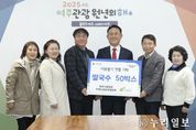 (누리일보) 지난 5일 여주시 중앙동지역사회보장협의체는 여주시청을 방문하여 여주시 저소득층을 돕기 위한 후원품으로 100만원 상당의 쌀국수, 50박스를 기탁했다. 기탁식에 참석한 협의체 위원장 및 위원분들은 “연말을 맞이하여 올 한 해가 가기 전에 의미있는 활동의 일환으로 기부를 선택했으며, 비록 적은 금액이지만 재원이 위원분들 모두가 자발적으로 십시일반 모은 회비로 마련된 '함께하는 기부'이기에 더 뜻깊게 생각한다.”며 기부 소감을 밝히셨다. 협의체는 지난 1년간 중앙동 취약계층을 위해 안부 확인, 복지제도 홍보, 기부자·사각지대 발굴 사업 및 점식식사·김장·요구르트·난방용품 등 다양한 나눔 사업을 시행했으며 특히, 연말을 맞이하여 취약계층(한부모 등) 아동 가구에게 일일 산타가 되어 줄 “중앙동 희망산타” 사업도 진행할 예정이라고 한다. 금번 여주시로 기탁된 후원품은 지원을 필요로 하는 관내 노인복지시설에 소중히 전달됐으며, 이외에도 여주시 취약계층 지원을 위해 많은 후원의 손길이 이어지고 있어 훈훈한 연말분위기가 이어지고 있다.