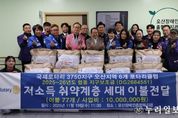 (누리일보) 오산장애인종합복지관은 지난 19일 국제로타리 3750지구 오산지역 6개 로타리클럽의 합동 지구보조금 사업을 통해 1,000만 원 상당의 겨울 이불을 후원받아 복지관 세탁지원서비스를 이용하고 있는 장애인 가정에 전달했다고 밝혔다. 이날 전달식에는 국제로타리 3750지구 오산지역 6개 로타리클럽과 오산시자원봉사센터 등 지역 내 관계기관이 함께 참여했다. 후원품은 오산시에 거주하며 세탁지원서비스를 이용하는 장애인 가정 77가구에 전달됐다. 특히 로타리클럽 회원들은 후원품을 단순히 전달하는 데 그치지 않고, 각 가정을 직접 방문해 겨울 이불을 전달하며 안부를 묻고 따뜻한 마음을 나누는 뜻깊은 시간을 가졌다. 성도규 오산장애인종합복지관 관장은 “국제로타리 3750지구 오산지역 6개 로타리클럽의 따뜻한 관심과 후원 덕분에 장애인 가정이 보다 따뜻한 겨울을 보낼 수 있게 됐다”며 “앞으로도 지역사회와 함께 다양한 나눔 활동을 지속적으로 확대해 나가겠다”고 말했다. 오산장애인종합복지관은 앞으로도 장애인 가정의 건강한 일상과 복지 향상을 위해 다양한 지원과 나눔 활동을 이어갈 계획이다. 한