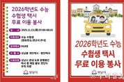 (누리일보) 성남시는 오는 11월 13일 ‘2026학년도 대학수학능력시험’이 치러지는 수능 당일, 지역 내 26개 시험장(465개 시험실)에서 시험을 치르는 1만2,533명의 수험생을 위해 특별 교통 대책을 시행한다. 개인택시와 법인택시 총 950여 대가 오전 7시부터 8시까지 ‘2026학년도 수능 수험생 택시 무료 이용 봉사’ 표지를 부착하고, 수험생을 대상으로 시험장까지 무료 운행 서비스를 제공한다. 수험생은 성남콜택시(031-755-4000)를 통해 택시를 호출하면 시험장까지 무료로 이동할 수 있다. 이마트성남점, 은행시장, 모란역 8번 출구, 성남종합버스터미널, 미금역 1번 출구 등 5곳의 주요 택시정류장에서는 수능 수험생이 무료 택시를 바로 탑승할 수 있도록 운영된다. 시는 수험생의 대중교통 이용 편의를 위해 등교 시간대인 오전 6시부터 8시 10분까지 광역·시내·마을버스 109개 노선을 집중 배차해 운행한다. 시험장 주변 교통 혼잡을 줄이기 위해 불법 주정차 차량에 대한 단속을 강화하고, 수험생 차량의 원활한 이동을 방해하는 경우 즉시 견인 조치할 예정이다. 이날 경찰서 모범