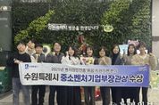 (누리일보) 수원특례시가 중소벤처기업부가 주관한 벤처창업진흥 유공 포상에서 ‘우수정책입안단체’로 선정돼 중기부 장관상을 받았다. 시상식은 27일 경기창조경제혁신센터에서 열린 ‘2025 경기 딥테크 스타트업 FLEX’ 행사 중 열렸다. 수원시는 창업지원센터 운영, 수원기업새빛펀드 조성, 중소·벤처기업 자금지원 등 다양한 창업·기업 성장 정책을 운영해왔다. 먼저 2012년 개소한 창업지원센터를 중심으로 창업기업 689개사를 보육하고, 1133억원의 누적 매출, 208억원의 투자유치를 달성했다. 관내 창업보육센터와 3D프린터 특화형 1인 창조기업센터 운영을 지원해 2024년 한 해 동안 230여개 기업을 지원해 고용 801명, 매출 660억원, 투자유치 136억원 등의 성과를 이뤘다. 또 기술력은 있지만 자금력이 부족한 중소·벤처·창업기업이 성장할 수 있도록 투자하는 펀드 ‘수원기업새빛펀드’도 2023년 11월 출시된 1차 수원기업새빛펀드는 3149억 원이 조성됐고, 수원 기업 투자액은 315억 4000만 원(총 19개사)에 달했다. 2차 펀드 조성을 위해 지난 10월 20일에는 8개 운용사와 업무협약을 체결했다.