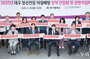 (누리일보) 대구광역시는 9월 30일 오전 10시 시청 동인청사 2층 상황실에서 김정기 대구시장 권한대행 주재로 ‘대구시 정신건강·자살예방 대책 마련을 위한 정책 간담회’를 개최했다. 이번 간담회는 코로나19 이후 악화된 정신건강 문제와 자살률 증가 추세에 대응하기 위해 마련됐다. 정신건강 문제와 자살 예방은 개인의 문제가 아닌 지역사회 전체가 함께 해결해야 할 과제로, 다분야 및 범부서 차원에서 접근해야 한다는 인식 아래 민·관·학이 한자리에 모여 지역 맞춤형 정책과 통합 대응 방안을 모색했다. 간담회에는 대구시 관련 부서장을 비롯해 경찰청, 소방안전본부, 교육청, 대구신용보증재단, 대구신용회복위원회, 정신의료기관, 정신건강복지센터, 사회복지관 등 관계기관이 참석했다. 이 자리에서 대구시는 추진 중인 5개 분야, 15대 핵심과제, 23개 자살예방사업을 소개했다. 또한, 경찰·소방·교육·복지·서민금융 등 기관별 사업 현황과 대상별 자살예방 정책 제안을 공유하며 정책을 점검·보완하고 타 기관과의 연계 협력 강화 방안을 논의했다. 김정기 대구광역시장 권한대행 행정부시장은 “누