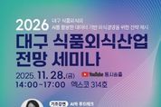 (누리일보) 대구광역시와 (사)식품외식진흥협회는 11월 28일 오후 2시, 엑스코 서관 314호에서 ‘2025년 제3회 2026 식품·외식산업 전망 세미나’를 개최한다. 이번 세미나는 ‘AI가 바꾸는 식품·외식산업의 미래’를 주제로 인공지능(AI)과 푸드테크, 미래형 K-푸드 산업 등 식품·외식산업이 지속 가능한 미래산업으로 발전하기 위한 정책 및 제도적 혁신 방안을 모색하기 위해 마련됐다. 최근 식품·외식업계가 유례없는 불황과 급격한 산업 환경 변화에 직면한 가운데, 이번 세미나는 식품·외식산업의 새로운 돌파구를 찾는 계기가 될 것으로 기대된다. 현장에서는 최신 푸드·소비 트렌드와 산업 대응 전략을 주제로 한 다양한 강연과 토론이 진행된다. 행사는 서울대학교 농생명공학부 푸드테크학과 정성미 교수의 ‘AI와 푸드테크’ 기조 강연을 시작으로, 두끼떡볶이 김관훈 대표가 연매출 2,400억 원의 브랜드 성공 비결을 공유한다. 이어 먼슬리키친 김혁균 대표이사가 ‘생성형 AI 식품·외식산업 대응 전략’을 주제로 식품·외식산업 내 AI 활용 방안을 제시한다. 주요 강연 이후에는 민·관