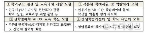 (누리일보) 교육부는 2월 4일 전문대학의 인공지능(AI)·디지털 전환(DX)을 체계적으로 지원하기 위해 ‘2026학년도 에이아이디(AID, AI+Digital) 전환 중점 전문대학 지원사업 기본계획’을 발표한다. 이번 계획은 전문대학을 지역 기반 인공지능(AI)·디지털 교육의 거점으로 육성하여, 재학생뿐만 아니라 지역주민과 재직자도 전문대학에서 인공지능(AI)을 배우고 활용할 수 있도록 하는 데 중점을 두었다. 이를 통해 지역 단위에서 인공지능(AI) 역량이 체계적으로 확산될 수 있도록 뒷받침한다. 교육부는 2026년 신규 사업 공모를 통해 총 24개 내외 사업단(전문대학)을 선정하여 사업단별 최대 10억 원(총 240억 원)을 지원할 예정이다. 주요 추진 내용으로는 ▲인공지능(AI)·디지털 전환(DX) 환경 조성, ▲재학생·교직원·지역주민 맞춤형 인공지능(AI) 역량 강화, ▲대학별 특화모형 구축이 있다. 우선, 전문대학이 지역사회의 인공지능(AI) 교육 거점으로 도약할 수 있도록 인공지능(AI)·디지털 전환(DX) 환경을 조성한다. 학생이 자신의 전공과 관련된 학습에 인공지능(AI)을 활용할 수 있도록 전