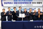 (누리일보) 화성특례시는 16일 시청 중앙회의실에서 마파지태양광협동조합과 ‘화성형 기본소득 에너지자립마을 조성을 위한 업무협약(MOU)’을 체결했다. 이날 협약식에는 정명근 화성특례시장을 비롯해 김진원 마파지태양광 협동조합장 등이 참석해, 주민주도형 재생에너지 기반 에너지자립마을 조성사업의 추진에 상호 협력하기로 했다. 이번 사업은 국유지를 활용해 주민이 사업비 전액을 부담해 100% 주민주도형 ‘에너지자립마을’을 조성하는 경기도 최초 사례로, 재생에너지 수익을 마을 복지와 기본소득으로 연계하는 ‘화성형 기본사회’ 정책의 첫 시범 모델이다. 마파지태양광협동조합은 석포6리 주민 25가구가 공동 운영하는 협동조합으로, 사업주체로서 장안면 석포리 823번지 제방 국유지에 415kW 규모의 태양광 발전설비를 설치한다. 사업비는 총 5억 2천만 원으로 전액을 주민이 자부담한다. 시는 협약에 따라 인허가, 관계기관 협의, 제도 검토 등 사업 추진에 필요한 행정적·제도적 지원을 담당하고, 에너지자립마을이 안정적으로 운영될 수 있도록 정책적 기반 마련에 협력한다. 또한 재생에너지 수익이 마을 복지와