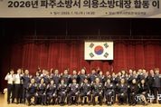 (누리일보) 파주소방서는 1월 15일 파주시민회관 대공연장에서 『2026년 파주소방서 의용소방대 대장 합동 이·취임식』을 열고, 지역 안전을 위해 헌신해온 이임 대장들의 공로에 감사를 전하는 한편, 새로운 리더들과 함께 ‘의용’의 사명을 이어갈 뜻을 다졌다. 이날 행사는 감사장 및 공로패 수여, 취임사, 축사 단체 기념촬영 순으로 진행되어 행사 참석 내빈과 대원들은 뜻깊은 순간을 함께하며, 의용소방대의 단결된 의지를 되새겼다. 조영린 법원남성의용소방대 대장과 김은란 금촌여성의용소방대 대장은 이임사를 통해 “대원들과 함께 지역을 지켜온 시간은 큰 영광이었다”며 “직책은 내려놓지만 ‘의용’의 마음은 끝까지 함께하겠다”고 전했다. 신임 대장으로 취임한 이일용 광탄남성의용소방대 대장과 김정숙 파주혼성의용소방대 대장은 “대장이라는 책임을 무겁게 받아들이며, 예방과 훈련 활동을 강화해 신뢰받는 의용소방대가 되겠다”고 각오를 밝혔다. 김명찬 파주소방서장은 축사에서 “대장직의 이양은 새로운 출발이자, 사명을 이어가는 과정”이라며 “세대는 바뀌었지만 지역을 위한 헌신은 계속돼야 한다”고 강조했다. 이어 “앞으로도