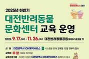 (누리일보) 대전광역시 동물보호사업소는 시민들의 반려동물 이해를 높이고 사람과 반려동물이 조화롭게 공존할 수 있는 환경을 조성하기 위해 '2025 하반기 반려동물 교육프로그램'을 9월 17일부터 11월 26일까지 총 33회 운영한다고 밝혔다. 이번 프로그램은 ▲행동교정 교육 ▲수제간식 만들기 ▲어질리티 체험 ▲반려견 통합 사회화 교육 ▲반려묘 소양교육 등 5개 강좌로 구성됐다. 행동교정 교육은 반려견의 문제행동 유형별 맞춤형 프로그램으로, 기초 산책 교육과 분리불안 교정, 짖음·공격성 대응법 등을 다룬다. 특히 사회적 배려계층을 대상으로 한 상담형 교육도 마련돼 반려동물과의 건강한 관계 형성에 도움을 줄 것으로 기대된다. 수제간식 만들기 교육(8회)은 강아지용 피자·쿠키 등을 직접 만들어보는 체험형 수업으로, 반려동물 먹거리에 대한 이해를 높인다. 어질리티 체험은 점핑·터널 등 장애물 코스를 통해 반려견과 보호자의 유대감을 강화하며, 기초반(6회)과 심화반(2회)으로 나뉘어 진행된다. 또한 어린 반려견이나 겁이 많은 반려견을 대상으로 한 통합 사회화 교육(4회)이 올해 새롭