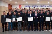 (누리일보) 용인특례시는 16일 시청 비전홀에서 ‘2025년도 개인택시운송사업 신규 면허증 수여식’을 개최하고, 신규 면허자 35명에게 면허증을 전달했다. 이날 신규 면허 공급은 제5차 택시 총량제에 따른 것으로 2019년 11월 이후 6년 만에 이뤄진 신규 택시 증차다. 시는 지난 8월 1일 개인택시운송사업 신규 면허 모집 공고로 132명의 신청을 받았고, 심사를 거쳐 지난 8일 최종 35명을 신규 면허자로 확정했다. 시는 2025년부터 2028년까지 택시 총 135대를 증차할 계획이다. 시는 증차가 마무리되면 용인지역 전체 택시 수는 2051대로 늘어나 시민들이 택시를 이용하는 데 느끼는 불편이줄어들 것으로 기대하고 있다. 이상일 시장은 “2019년 이후 6년 만에 신규 면허가 발급이 됐는데, 2028년까지 순차적으로 2051대까지 택시가 늘어나면 시민들 입장에서도 매우 반가운 일이라고 생각한다"며 "오늘 발급 받으신 분들을 진심으로 축하드리며, 시민을 위해 앞으로 더욱더 멋진 활동을 해주시길 바란다”고 말했다. 이 시장은 “시민이 늘어날수록 다양한 교통수단이 필요하고, 택시를 이용