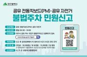(누리일보) 대구광역시는 전동킥보드 등 개인형 이동장치(PM)의 불법주차 문제를 해소하기 위해 ‘대구광역시 공유 PM불법주차 신고’ 시스템을 구축하고, 3월 3일부터 모바일 웹 기반 민원신고 서비스를 시행한다. 최근 공유 전동킥보드 이용 증가로 인도, 횡단보도, 버스정류장 주변에 무단 방치되는 사례가 늘어나면서 보행 불편과 안전사고 우려가 커지고 있다. 이에 대구시는 시민 누구나 앱 설치 없이 간편하게 모바일 웹을 통해 신고할 수 있는 시스템을 마련하고, 신속한 현장 대응에 나선다. 이번 시스템은 지난해 하반기 개발을 마치고, 관할 구·군 및 공유 PM 업체를 대상으로 기능 개선과 시스템 안정화 과정을 거쳐 본격 운영에 들어간다. 신고 방법은 대구시 홈페이지 ‘대구시 공유 PM·자전거 불법주차신고’ 메뉴에 접속해 공유 PM의 QR코드를 스캔, 신고 사진을 업로드하면 된다. 신고된 민원은 관할 구·군 및 공유 PM 업체에서 접수하며, 신고자는 모바일에서 실시간으로 처리 상황을 확인할 수 있다. 불법주차 신고 대상은 ▲보·차도 구분 차도 ▲도시철도역 출입구 3m 이내 ▲버스 정류소 5m 이