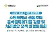 (누리일보) 수원특례시의회 환경안전위원회는 11월 6일, 오후 2시, 수원시청 별관 1층 중회의실에서 ‘공동주택 음식물류폐기물 감량 및 처리방안 모색을 위한 의정토론회’를 개최한다고 밝혔다. 음식물류폐기물, 즉 음식물쓰레기는 단순히 악취와 수거 문제를 넘어 매립이나 소각으로 인한 2차 환경오염을 일으키고 기후위기에도 악영향을 미치고 있기 때문에 이번 토론회는 음식물쓰레기 발생을 원천적으로 줄이고, 발생된 쓰레기를 보다 효율적으로 자원화하기 위한 기술 중심의 대응 방안을 고민하는 자리이다. 이를 위해 ▲음식물류폐기물 감량 및 처리 과정에서의 기술 동향 ▲타 지자체의 적용 우수 사례 ▲수원시의 음식물류폐기물 처리 현황 등을 공유하고 전문가, 시민과 함께 지속 가능한 음식물류폐기물 관리 체계를 구축하는 데 필요한 제도, 예산지원 등에 대해서도 논의할 계획이다. 환경안전위원회 채명기 위원장은 생활폐기물 처리 비용 절감과 자원 재활용 확대를 위한 정책 제안에 힘써왔으며 이번 토론회에서는 좌장으로서 지정토론을 진행할 예정이다. 채명기 위원장은“음식물쓰레기는 단순한 폐기물이 아니라, 기술과 정책의 융합으로 충분