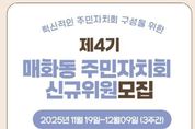 (누리일보) 시흥시 매화동 행정복지센터는 12월 9일까지 ‘제4기 매화동 주민자치회’ 신규위원 30명을 공개 모집한다. 신청은 매화동 행정복지센터 방문 또는 전자우편을 통해 가능하다. 매화동 주민자치회는 지역의 다양한 현안에 대해 주민 스스로 자치계획을 수립하고, 주민총회를 통해 실행 방향을 결정하는 주민대표기구다. 제3기 매화동 주민자치회의 임기(2024.01.01.~2025.12.31.)가 만료됨에 따라 '시흥시 주민자치회 및 주민자치센터 설치·운영에 관한 조례'에 기반한 매화동 발전의 혁신적인 마인드를 가진 제4기 신규위원을 선발하며 위원 임기는 2년이고 중도 해촉이 가능하다. 신청 자격요건은 ▲매화동에 주민등록이 돼 있는 사람 ▲매화동에 사업장 주소를 두고 있는 사업장에 종사하는 사람 ▲매화동에 소재한 학교, 기관, 단체 등에 속한 사람 ▲영주의 체류자격을 갖춘 외국인으로서 매화동의 외국인등록대장에 등재된 사람이며, 타 동 주민자치회 위원이나 매화동 관계단체 소속 주민은 지원할 수 없다. 선발된 주민자치회 위원들은 매화동의 발전 방향을 논의하고 자치계획을 수립·집행하는 등 실질적인 지역 자치