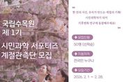 (누리일보) 산림청 국립수목원은 식물계절 변화를 시민과 함께 기록하는 ‘국립수목원 제1기 시민과학 서포터즈 계절관측단’을 모집한다고 밝혔다. 이번 시민관측단은 전국민 누구나 지원 가능하며, 지역 제한 없이 전국 각지에서 총 50명을 선착순으로 모집한다. 모집 기간은 2026년 2월 1일부터 2월 28일까지로, 모바일 식물계절관측 웹서비스를 통해 신청할 수 있다. 선발된 시민관측단은 2026년 3월 14일부터 11월 21일까지 약 8개월간 활동하며, 스마트폰을 활용해 일상 속에서 나무의 개화·단풍·낙엽 등 식물계절을 관측하고 기록하는 역할을 수행하게 된다. 국립수목원은 이번 시민관측단 운영을 통해 시민이 직접 과학 연구에 참여하는 시민과학 문화를 확산하고, 전국 단위의 지속적인 식물계절 관측 체계를 구축할 계획이다. 식물계절은 기후변화로 인한 생태계 변화를 가장 민감하게 보여주는 지표 중 하나로, 장기적인 관측자료의 축적이 중요하다. 시민관측단이 수집한 기록은 국립수목원이 추진하는 식물계절 연구와 기후변화 대응을 위한 과학적 근거 자료로 활용될 예정이다. 임영석 국립수목원장은 “시민관측단은 국민과 함께 생물다양성