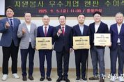 (누리일보) 대전시는 5일 시청 중회의실에서 자원봉사활동이 우수한 기업 3곳에 ‘2025년도 자원봉사 우수기업’ 현판을 수여했다. 수여식에는 이장우 대전시장과 김현호 대전시자원봉사센터장, 김영태 대전시자원봉사연합회장을 비롯해 길상원 ㈜건일엔지니어링 대표, 박균익 ㈜아이씨푸드 대표, 장필규 현대프리미엄아울렛 상무와 박재성 대전점장 등이 참석했다. 이번에 현판을 받은 세 기업은 2023년 12월 대전시와 ‘자원봉사 사회공헌 협약’을 체결한 뒤 적극적인 사회공헌 활동을 펼쳐 지난해 12월 ‘자원봉사 우수기업’으로 선정됐다. ㈜건일엔지니어링은 ▲취약계층을 위한 명절 및 김장나눔 행사 후원(매년) ▲지역 내 아동시설에 사랑의 운동화 물품 후원 ▲2025년 영남지역 산불 재난 간식 후원 등 꾸준한 나눔을 실천해 왔다. ㈜아이씨푸드는 ▲추석 명절맞이 온정나눔 후원 ▲제80회 식목일 기념 나무심기 행사 참여 ▲기업과 전통시장이 함께하심 사업 후원(매년) ▲대전시 체육 우수선수 장학금 지급(매년) ▲대전꿈돌이라면 매출액 1% 기부 등 다양한 활동을 이어왔다. 현대프리미엄아울렛 대전점은 ▲시민복리증진을
