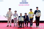 (누리일보) 대전시의회 조원휘 의장은 4일 충무체육관에서 개최된 제21회 대전장애인한마음대축제에 참석해 장애인과 가족 모두가 행복하고 건강하게 살아갈 수 있도록 정책적 관심과 지원을 약속했다. 이날 행사에는 지역을 대표하는 단체·기관장, 장애인 및 가족, 자원봉사자 등 5,000여 명이 참석한 가운데 1부 기념식은 유공자 표창장 전달, 주요내빈 축사, 기증식 순으로 진행됐고, 2부 문화행사에서는 초대가수의 축하공연과 경품 추천, 5종목 문화행사 등이 펼쳐졌다. 조원휘 의장은 “대전시에는 시민 백 명 중 다섯 분 정도가 장애를 갖고 계시고, 장애인의 소득과 자립, 의료, 이동권 보장에 대한 사회적 관심과 지원이 절실하다”면서, “대전시의회는 그동안 고령장애인 지원, 노인·장애인 보호구역 관리 조례안 처리, 장애인사회참여증진 특별위워회 구성 등 장애인의 삶과 권리 보장을 위해 노력해왔고, 앞으로도 모두가 살기 좋은 장애인 친화 도시 대전을 만들기 위해 의회 본연의 역할에 최선을 다하겠다”고 말했다.