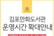 (누리일보) 김포시는 시민들의 문화 향유 기회를 확대하고 도서관 이용 편의를 높이기 위해 9월 15일부터 김포만화도서관 운영시간을 주말과 야간까지 확대한다고 밝혔다. 이번 시행으로 김포만화도서관 운영시간은 기존 월요일부터 금요일 오전 10시부터 오후 6시까지 운영하던 것을 화요일 오전 10시부터 일요일 오후 9시까지로 확대된다. 김포만화도서관은 김포시 최초 만화특화도서관으로 다양한 만화 자료를 보유하고 있으며, 어린이부터 성인까지 폭넓은 연령층이 이용하는 지역의 대표적인 문화공간으로 자리매김해 왔다. 도서관 관계자는 “이번 주말 야간 확대 운영으로 직장인, 학생, 가족 단위 시민 등 모든 연령층이 함께 이용하고 누릴 수 있는 지역사회의 생활 문화 거점이 될 것으로 기대한다”며 “앞으로도 시민 중심의 도서관 운영을 통해 독서 문화 향유 기회를 지속적으로 확대해 나가겠다”고 밝혔다.