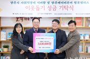 (누리일보) 양주시사회적경제지원센터가 2025년 사회적경제 나눔장터 기버마켓을 통해 조성된 '기버함' 수익금 363만 원을 지역사회 이웃돕기 성금으로 기탁하며 나눔 문화 확산에 앞장섰다. 성금 기탁식은 10일 오후 2시에 시장실에서 열렸으며, 김도웅 경제문화체육국장, 정미순 지역경제과장, 염일열 사회적경제지원센터장, 최화자 사회적경제협의회 회장, 이정주 자원봉사센터장, 전수경 사무국장 등 관계자 11명이 참석했다. 이번에 기탁된 363만 원은 올해 기버마켓 운영 과정에서 사회적경제기업과 참여 시민들의 자발적 기부로 마련된 금액이다. 수익금은 양주시자원봉사센터에 지정 기탁돼 지역 내 취약계층 지원 사업에 쓰일 예정이다. 염일열 센터장은 “기버마켓이 지역 사회와 사회적경제 조직을 연결하는 의미 있는 플랫폼으로 자리잡고 있다”며 “앞으로도 나눔 활동이 지속될 수 있도록 협력해 나가겠다”고 말했다. 양주시 관계자는 “기부에 동참해 준 사회적경제기업과 시민 여러분께 감사드린다”며 “전달된 성금은 도움이 필요한 가정과 복지 사각지대 해소를 위해 사용될 예정”이라고 전했다.