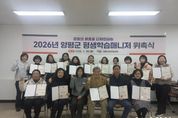 (누리일보) 양평군은 26일 평생학습센터에서 ‘2026년 양평군 평생학습매니저 위촉식’을 성황리에 개최했다. 군은 이번 위촉식에서 평생학습매니저 역량 강화 연수를 이수하고 활동 신청서를 통해 지속적인 참여 의사를 밝힌 인원을 대상으로, △학습 여행 운영 참여 실적 △회의 참여도 △관련 사업 기여도 등 활동 전반의 성실성을 평생학습매니저 평가표에 따라 종합적으로 심사해 최종 17명의 평생학습매니저를 공식 위촉했다. 위촉된 평생학습매니저들은 앞으로 1년간 지역 평생학습 활성화를 위해 주민의 학습 참여를 독려하고, 평생교육 프로그램 기획·운영 지원, 학습자 상담 및 만족도 조사 등 현장 중심의 역할을 수행하게 된다. 이날 위촉식은 평생교육 관계자와 위촉자들이 참석한 가운데 △위촉장 수여 △향후 활동 계획 공유 △평생학습 발전 과제 논의 등의 순서로 진행됐다. 위촉된 매니저들은 온행복센터(읍·면·동 평생학습센터)와 우리 동네 학습공간을 중심으로 지역 맞춤형 학습 콘텐츠 개발·운영, 학습자 요구 조사, 학습 지원 체계 구축 등에 참여할 예정이다. 전진선 양평군수는 “평생학습매니저는 주민의 삶과 평생학습을 일