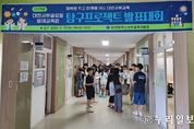 (누리일보) 대전서부교육지원청 글로벌영재교육원은 8월 30일 영재교육원 초·중학생 99명(23팀)과 지도교사 20명이 참여한 가운데 탐구프로젝트 발표대회를 개최했다. 대전서부글로벌영재교육원의 탐구프로젝트 발표대회는 초등학교 6학년 수학·과학 통합 분야 59명과 중학교 3학년 융합 분야 40명의 학생들이 2~5명씩 팀을 이루거나 개인으로 참여하여, 수업에서 배운 이론적 개념을 바탕으로 자율적인 연구 주제를 선정하고, 지도교사와 함께 문제 해결 방안을 설계해 장기적인 탐구 활동을 수행한 결과를 발표하는 행사이다. 초등 12팀, 중등 11팀, 총 23팀이 참여한 가운데 대전 하천 수질 조사 및 수질개선 방법 탐구, 자동차 바퀴 무늬에 따른 마찰력 변화 탐구, 로켓 노즈콘 형상에 따른 항력계수 비교에 대한 탐구, 잎 색깔에 따른 광합성량 비교 및 저 광합성 식물의 생존 전략 연구, 태양전지 효율 연구 등 과학, 공학, 환경 분야를 아우르는 융합적 주제들로, 실생활과 연결된 자연현상이나 기술적 문제를 과학적으로 분석하고 해결 방법을 모색하는 과정에서 학생들은 창의적 사고력과 문제 해결 능력을 한층 더 발전시켰다. 이번
