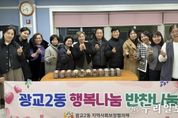 (누리일보) 광교2동 지역사회보장협의체는 2025년 6월부터 12월까지 관내 독거노인 복지사각지대 대상자를 위한 '행복나눔 반찬나눔'사업을 운영하여 성공적으로 마무리했다. '행복나눔 반찬나눔'은 관내 어려운 이웃에게 정기적으로 직접 반찬을 전달하며 따뜻한 정을 나누는 복지사업으로, 지역사회보장협의체 위원을 비롯한 자원봉사자들이 반찬을 구매하여 독거노인들에게 직접 방문하여 전달하는 방식으로 운영됐다. 이번 사업은 매월 1회 진행되며 기초생활수급자 독거노인 등을 우선 선정해서 7개월동안 진행했고, 반찬 전달 시 안부 확인을 병행하는 정서적 돌봄으로 이웃사랑 나눔을 실천했다. 광교2동 지역사회보장협의체 이종금 위원장은 “단순히 반찬을 나누는 것을 넘어서 지역주민에게 이웃사랑 나눔을 실천했고 대상자들도 만족하여 의미있는 사업이었다”고 밝혔다. 또한, 박남숙 광교2동장은 “올 한해 지역사회보장협의체 위원님들과 봉사자 분들의 따뜻한 손길로 민·관이 함께하는 나눔 복지를 실현했다”고 말했다. 광교2동은 자원봉사자 모집과 반찬 기부 참여 등을 지속적으로 홍보하며, 내년에도 다양한 대상자들이 지원받을