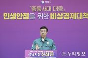 (누리일보) 성남시는 31일 중동 지역 군사적 긴장 고조에 따른 국제유가 상승과 물류 차질, 환율 변동 등 대외 불안에 대응해 중앙정부에 국가 재난 선포를 건의하고, 성남사랑상품권 발행 확대와 할인율 상향, 소상공인·기업 대상 금융지원 강화 등 비상경제대책을 본격 추진한다고 밝혔다. 신상진 성남시장은 이날 오전 11시 시청 모란관에서 중동사태 대응 민생안정을 위한 비상경제 대책 기자회견을 열고 “중동 사태로 인한 서민 경제 부담을 완화하고, 지방정부가 앞장서 지원에 나설 수 있도록 중앙정부가 역할을 다해주기를 바란다”며 국가 재난 선포 필요성을 강조했다. 신 시장은 이어 “정부가 현 상황을 국가적 경제위기로 판단해 재난을 선포할 경우, 성남시는 관련 법률에 따라 41만 전 가구에 가구당 10만 원씩 총 410억원 규모의 추가경정예산을 긴급 편성해 즉각 지원하겠다”며 “이를 위한 사전 준비를 완료한 만큼 중앙정부의 판단에 맞춰 신속히 추진하겠다”고 밝혔다. 또한 성남사랑상품권 발행 규모를 기존 월 250억원에서 300억원으로 확대하고 할인율을 8%에서 10%로 상향하는 한편, 1인당 구매 한도를 월 30만원에서