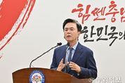 (누리일보) 김태흠 충남도지사가 “우리 미래를 위해서는 ‘진짜 통합’을 이뤄내야 한다”며 국회 내에 논의기구를 만들어 실질적인 통합법안과 실행 시기, 방법 등을 결정하자고 제안했다. 김 지사는 25일 도청 프레스센터에서 기자회견을 갖고 “국회 법사위가 충남대전통합특별법 상정을 보류하고 추후 논의하기로 하면서 사실상 행정통합은 무산 지경에 이르렀다”며 유감을 표했다. 김 지사는 이어 “행정통합은 속도가 아니라 재정과 권한 이양, 즉 내용이 중요하다”며 “통합 시 스스로 살림을 꾸려나아가기 위해서는 현행 75대 25인 국세와 지방세 비율을 우리 요구대로 60대 40 정도로 조정해야 한다”고 강조했다. 또 “예타 면제나 특별지방행정기관 사무 이양, 개발 인허가 사업 의제 처리 등 주요 권한을 과감하게 통합시에 넘겨줘야 한다”며, 그러나 충남대전통합특별법에는 이 같은 핵심 내용이 모두 빠지고 선언적 문구만 남았다고 비판했다. 김 지사는 “행정통합은 단순히 몸집만 키우자는 것이 아니라 자치분권과 균형발전의 초석을 놓는 국가 대개조 사업”이라며 “그래서 ‘통합시계’를 조금 늦추는 한이 있더라도 올바른 방향
