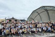 (누리일보) 제주특별자치도교육청은 27일 제주시 한림읍 비양도 일대에서 ‘2025 제주 환경지킴이 현장 실천 활동’을 개최했다. 이번 행사는 세계 환경의 날 뮤지컬‘푸른 희망’을 시작으로 5주간의 기후수비대 활동, 8월의 활동 공유회 및 인증서 수여식에 이은 마지막 여정으로 도내 환경지킴이 인증 학생과 담임교사 등 70여 명이 참여해 생태 체험과 기후행동을 실천하며 환경 보호의 중요성을 몸소 느끼는 시간을 가졌다. 주요 프로그램으로는 비양봉 생태 탐사, 비양도 한바퀴 조깅하며 쓰레기 줍기, 펄랑못(바닷물과 민물이 만나는 습지) 탐조 활동, 드론 간식 수송 체험, 생태 글쓰기 활동 등 다채로운 활동을 통해 참가자들은 자연과 교감하며 환경 지킴이로서의 책임감을 더했다. 특히 기후수비대 활동 티셔츠를 착용한 학생들이 각자 준비한 종이 상자 글자를 이어 붙여‘2025 다같이 지구력 기후수비대, 행동하는 우리가 푸른 지구를 지키는 진짜 힘!’이라는 문구를 완성하며 캠페인의 의미를 되새겼다. 특히 이번 행사는 제주해양경찰서 한림파출소의 해양 안전교육, 한국관광공사 제주지부·이니스프리·제주올레·비양도 마을회의