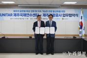 (누리일보) 제주관광공사와 유엔훈련연구기구(UNITAR) 제주국제연수센터가 국제협력 기반조성 및 상호협력을 위해 손을 잡았다. 제주관광공사는 지난 9일 도내 일원에서 UNITAR 제주국제연수센터(소장 신성철)와 제주의 글로벌 위상 강화 및 지속 가능한 관광 활성화를 위한 업무협약을 체결했다고 10일 밝혔다. 1963년 설립된 UNITAR(유엔훈련연구기구)는 교육훈련과 종합적인 연구를 담당하고 있으며, 전 세계 33개 지역연수센터를 통해 지속가능발전목표(SDGs) 달성을 지원하고 있다. 이들 센터 중 하나인 제주국제연수센터는 지난 2010년 개소 이후 모범적인 연수사업을 운영해오고 있다. 특히 현재까지 아시아·태평양 지역 정부 관계자와 국내·외 청년 등 2만8천여 명에게 세미나·워크숍·온라인 연수 등을 제공, 역량 강화와 지속 가능한 발전에 기여하고 있다. 이날 두 기관은 △국제연수 및 훈련 등의 프로그램 운영 △제주 지역문화 기반의 글로컬 관광 콘텐츠 개발·활용 △국제기구 네트워크를 활용한 제주 글로벌 위상 강화 △유엔 지속가능발전목표(SDGs) 이행 증진 등의 분야에서 공동 협력하기로 했다. 이