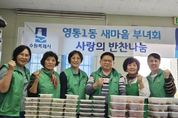 (누리일보) 수원시 영통구 영통1동 새마을부녀회는 지난 24일, 지역 내 저소득층과 독거 어르신들을 위해 ‘반찬 나눔 행사’를 진행했다. 부녀회원들은 장조림과 어묵볶음 등 정성껏 만든 반찬을 준비해 따뜻한 마음을 담았다. 이날 준비된 반찬은 어려운 이웃들에게 직접 전달되어 풍성하고 행복한 한 끼가 될 수 있도록 힘을 보탰다. 강경임 새마을부녀회장은 “작은 정성이지만 따뜻한 반찬으로 이웃분들이 건강하게 식사하시길 바란다”며 “앞으로도 지속적인 봉사활동으로 따뜻한 지역사회를 만드는 데 힘쓰겠다”고 말했다. 영통1동 관계자는 “새마을부녀회의 꾸준한 나눔 실천이 지역사회에 큰 힘이 되고 있다”며 “행정복지센터에서도 복지 사각지대 해소를 위해 적극 협력하겠다”고 전했다. 한편, 영통1동 새마을부녀회는 매년 반찬 나눔, 김장 담그기 등 다양한 봉사활동을 통해 지역 주민과의 따뜻한 소통을 이어가고 있다.