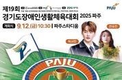 (누리일보) 1,420만 경기도민 생활체육인의 화합과 축제의 장, ‘제19회 경기도장애인체육대회 2025 파주’가 오는 9월 12일 파주스타디움에서 개회식을 시작으로 성대한 막을 올린다. 개회식은 오전 10시 30분 식전행사를 시작으로, 11시부터 선수단 입장과 주제공연 등 공식 행사가 진행된다. 주제공연에는 평창동계패럴림픽 폐회식에서 공연을 펼쳤던 청각장애인 발레리나 고아라와 대한민국 최초 청각장애인 아이돌인 ‘빅오션’이 출연해 공연의 감동을 더할 예정이다. 이어지는 식후행사에서는 인기 트로트 가수 박서진, 전유진의 축하공연이 펼쳐져 선수단과 시민 모두가 함께 즐기는 화려한 무대를 선사할 계획이다. 개회식은 경기도민 누구나 자유롭게 참관할 수 있으며, 다채로운 부대행사도 마련돼 참가자와 관중 모두 즐길 준비만 하면 된다. 파주시는 선수단과 관람객이 안전하고 편안하게 대회를 즐길 수 있도록 교통·주차, 숙박·외식 지원, 경기장 안전 점검, 자원봉사 운영 등 대회 개최를 위한 만반의 준비를 마쳤다. 이번 대회는 ‘아름다운 도전, 감동 가득 파주, 하나 되는 경기’라는 구호 아래 9월 12일부터 13일