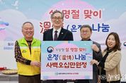 (누리일보) 대전시자원봉사연합회는 10일 기상청 소속 공무원 봉사회(단비회)의 후원을 받아 설 맞이 사랑의 온정(溫情)나눔 행사를 진행했다. 이날 행사에는 유득원 대전시행정부시장, 이정환 기상청 차장, 김영태 (사)대전시자원봉사연합회장 등 20여 명이 참석했다. 이날 제작된 설명절키트(떡국떡,전,과일,제수용품 등) 70세트는 지역내 독거어르신 등 취약계층 가정에 전달될 예정이다.