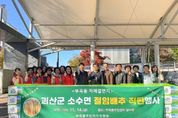 (누리일보) 의왕시 부곡동주민자치위원회가 11월 14일 부곡동주민센터에서 자매결연지 괴산 소수면의 대표 농산물 중 하나인 괴산절임배추 직거래 행사를 개최했다. 이날 직거래 장터는 사전 주문을 통해 이뤄졌으며, 이 자리에서 부곡동 주민들은 소수면의 질 좋은 절임 백추 120여 박스를 전달받았다. 심장섭 부곡동 주민자치위원장은 “친환경 자재로 사용한 절임 배추를 제공받아 매우 고맙게 생각한다”며 “앞으로도 자매결연지와 돈독한 우호관계를 유지하고 상생발전을 위한 긴밀한 관계를 이어가겠다”고 말했다. 김기선 소수면 주민자치위원장은 “소금값 등 원자재 가격이 올라 김장철 배추가격에 걱정이 많았다”며 “좋은 가격으로 배추를 제공할 수 있어 기쁘고, 자매결연지에 대한 따뜻한 관심으로 배추를 구매해 주신 부곡동주민자치위원회와 지역 주민들께 감사드린다”고 말했다.