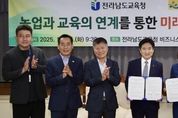 (누리일보) 전라남도교육청은 10월 14일 청사 5층 비지니스실에서 전라남도 농업기술원(원장 김행란)과 ‘농업과 교육의 연계를 통한 미래인재 육성 업무협약’을 체결했다. 이번 협약은 농업·농촌의 다양한 자원을 교육과 연계해 학생들이 체험 중심으로 배우고, 생태 감수성과 창의 역량을 키울 수 있도록 지원하기 위해 마련됐다. 이번 협약에 따라 양 기관은 ▲ 농촌교육농장과 치유 농장을 활용한 체험교육 확대 ▲ 늘봄학교 운영과 연계 가능한 프로그램 제공 ▲ 생태 기반 창의 교육, 진로, 창업 체험처 발굴 및 정보 제공 ▲ 지속가능한 농촌교육 모델 구축 등에 힘을 모으기로 했다. 양 기관은 협약 내용을 바탕으로, 각급 학교와 교육지원청이 쉽게 활용할 수 있는 프로그램을 발굴하고 현장 체험 중심 교육 자료를 개발할 예정이다. 또한 교원 연수와 교육공동체 협력 네트워크를 운영해 농업·농촌 자원을 효과적으로 교육 현장에 적용할 수 있도록 지원할 방침이다. 아울러, 농촌교육농장의 교육적 활용도를 높이고, 지역 농업과 연계한 미래형 교육 모델을 확산할 계획이다. 학생들은 이를 통해 생태 감수