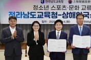 (누리일보) 전라남도교육청은 14일 상해한국상회와 ‘청소년 스포츠·문화 교류를 위한 업무협약(MOU)’을 체결했다. 이번 협약은 전남 학생들과 상해 지역 한국 청소년들이 스포츠를 매개로 협동심과 리더십을 기르고, 문화·역사 체험을 통해 세계시민 의식과 정체성을 키우기 위해 추진됐다. 양 기관은 앞으로 ▲ 청소년 스포츠 교류전 참가 협력 ▲ 현지 역사·문화 체험 프로그램 지원 ▲ 글로컬 인재 양성을 위한 국제교류 운영 ▲ 교육·체육 분야 행사 및 정보 공유 등을 추진할 예정이다. 특히, 상해는 일제강점기 대한민국 임시정부가 수립된 역사적인 도시로, 청소년들이 우리 민족의 독립정신과 애국심을 배울 수 있어 교육적으로 의미가 깊은 곳이다. 상해한국상회는 풍부한 경험과 인적·사회적 자산을 바탕으로 ▲ 청소년 교육 프로그램에 대한 전략적 투자 ▲ 한중 양국의 한국 학생 간의 지속 가능한 교류 ▲ 지역사회 네트워크를 활용한 교육 콘텐츠 재생산 등 교육 협력의 새로운 모델을 제시할 예정이다. 전남교육청은 전남의 학생들이 세계와 소통하며 미래를 준비할 수 있도록 교육 외교의 장을 넓히는 데 주력해 왔
