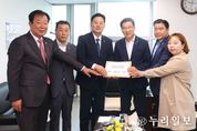 (누리일보) 경기도의회 교섭단체인 국민의힘과 더불어민주당이 다시 한번 ‘지방의회법 제정’에 뜻을 모았다. 경기도의회 국민의힘(대표의원 백현종, 구리1)과 더불어민주당(대표의원 최종현, 수원7)은 21일, 경기도 국정감사 차 경기도청을 방문한 국회 행정안전위원회 신정훈 위원장을 만나 ‘지방의회 제도개선을 위한 '지방의회법' 제정 건의안’을 제출했다. 이 자리에는 국민의힘에서 이용호 총괄수석부대표(비례)와 이한국 수석정책위원장(파주4), 임상오 안전행정위원장(동두천2)이 더불어민주당에서 최종현 대표의원과 전자영 수석대변인(용인4)이 참석했다. 현장에서는 지방의회법 제정의 필요성에 대한 설명과 함께 세부 사항으로 ▲지방의회 운영 관련 자체 예산편성 및 조직관리권 부여 근거 필요 ▲지방의회 사무기구 자체 감사 및 조사권 반영 근거 필요 ▲현행 정책지원관(2의원 1지원관) 제도를 별정직 보좌관제로 전환(1의원 1보좌관제) 등에 관한 건의가 이뤄졌다. 이용호 총괄수석부대표는 “지방의회법은 실질적으로 지방자치단체를 견제하고 감시할 수 있는 최소한의 제도적 기반”이라며 “그 최소한의 장치가 있어야만 도의회 역시