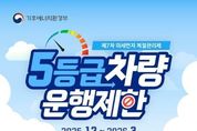 (누리일보) ■ 미세먼지 계절관리제 기간 배출가스 5등급 차량 운행제한 맑고 푸른 하늘을 만들어 나가기 위해 5등급 차량 운행을 제한하고 단속하는 미세먼지 저감 제도입니다. · 2025년에는? 올해는 더 나아가 전기차·친환경차를 함께 사용하며 모두가 만드는 깨끗한 공기에 동참해 주세요! ■ 제7차 미세먼지 계절관리제 운행제한제도 한눈에 알아보기 · 시행기간 2025년 12월부터 2026년 3월까지 · 시행시간 평일 오전 6시부터 오후 9시까지 *울산은 오후 6시까지 · 시행대상 저공해 미조치 5등급 차량 · 시행지역 - 수도권(서울·경기·인천) - 비수도권 6개 지역(세종·대전·광주·대구·울산·부산) ■ '운행제한제도' 언제, 어디서 시행하나요? 12월부터 3월, 오전 6시부터 오후 9시까지 수도권과 6개 특·광역시에서 시행됩니다. *울산은 오후 6시까지 *평일 기준 공휴일과 토요일 제외 ■ 내 차는 단속대상일까요? 저공해 미조치 5등급 차량은 단속 대상입니다. 자동차배출가스 종합전산시스템 '등급조회'에서 확인할 수 있습니다. 자동차