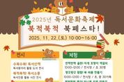 (누리일보) 춘천교육문화관은 11월 22일 2025년 독서문화축제 ‘북적북적 북 페스타!’를 개최한다. 이번 행사는 독서 프로그램 활동사진과 도서 전시, 문화 체험, 공연, 자료 대출 및 포토 존 이벤트로 다양한 행사를 진행할 예정이다. △독서 활동 도서 전시 △동물 모양 자개 책갈피 만들기 △나만의 북 퍼퓸 만들기 △미니 북 키링 만들기 △독서동아리 연극 활동 공연 △가족 뮤지컬 ‘알라딘’ △자료 대출 이벤트 ‘둥글게 둥글게 돌림판’ 및 포토 존 등 참여형 독서문화 체험과 공연 행사를 진행한다. 참가 신청은 11월 14일부터 20일까지 춘천교육문화관 누리집을 통해 선착순 모집한다. 유선종 관장은 “이번 행사를 통해 책을 매개로 소통하고 즐거움을 나누며, 지역사회에 독서 문화가 확산되기를 바란다”라고 전했다. 자세한 사항은 춘천교육문화관 누리집 공지 사항을 참고하거나 어린이자료실로 문의하면 된다.