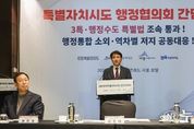 (누리일보) 대한민국특별자치시도 행정협의회(대표회장 강원특별자치도지사 김진태) 시‧도지사는 2026년 2월 8일 서울 콘래드 호텔에서 긴급 회동, 간담회를 개최했다. 이날 모임은 휴일임에도 불구하고 대표회장인 김 지사의 제안에 따라 이루어졌으며, 최근 국회와 정치권의 ‘3특·행정수도 특별법’에 대한 법안심사 지연과 행정통합 소외 우려에 대응방안을 논의했다. 최근 국회는 2월 회기에 3특‧행정수도특별법을 배제한 채 ‘통합 특별법안’만 심사하기로 하면서, 홀대와 차별의 논란을 가져왔다. 이에 따라 2월 특별법 통과와 광역 행정통합 인센티브에 대한 문제점과 우려를 논의하고 향후 대응방안에 대해 의견을 모았다. 또한 간담회에서는 시도별 특성과 여건을 반영한 주문과 당부사항이 담긴 시도별 입장문이 발표됐다. 먼저, 대표회장인 김 지사는 “먼저 발의된 강원특별법을 비롯한 3특, 행정수도법을 먼저 심사해야 한다”며, 행정통합 인센티브인 “20조 지원은 재원 대책이 전혀 없어 한정된 재원을 배분하는 과정에서 결국 다른 지자체가 피해를 볼 수밖에 없다”고 했다. 또한 공공기관 통합 시도 우선 이전도 “통합 시도가 알짜배기 공공