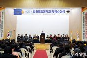 (누리일보) 강원도립대학교는 2월 13일 11시, 대학 다목적관에서 제27회 학위수여식을 진행했다. 이번 학위수여식에서 졸업생 230명이 영광스러운 학위를 수여받았으며, 졸업생과 학부모를 비롯해 김진태 강원특별자치도지사, 강원특별자치도의회 의원 등 약 400여 명이 참석해 졸업의 기쁨을 함께 나눴다. 이날 전체 수석을 차지한 레저스포츠과 정소영 학생이 강원특별자치도지사 표창 수상의 영예를 안았으며, 강원특별자치도의회 의장 표창은 바리스타제과제빵과 옥지훈 학생과 사회복지과 고요엘 학생에게 수여됐다. 또한 각 학과 수석 10명에게는 강원도립대학교 총장 표창이 수여됐으며, 우수한 학업 성취와 학과 활동을 통해 대학 발전에 기여한 22명의 학생들에게는 유관기관 및 단체장 표창이 수여됐다. 최종균 총장은 축사를 통해 졸업생들의 노력과 성취를 격려하며 “졸업생들은 지식뿐 아니라 사회가 요구하는 실력과 책임감을 함께 갖춘 인재”라며 사회 진출에 대한 기대를 전했다. 이어 졸업생들에게 끊임없는 도전과 자기 성찰의 중요성을 강조하며, “주변의 기대보다 자신의 내면의 목소리에 귀 기울이며 자신만의 길을