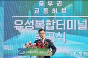 (누리일보) 대전시의회 조원휘 의장은 29일 유성복합터미널 건립사업 준공식에 참석해 준공을 축하하며, 지역이 교통과 경제 관문으로 거듭나길 기원했다. 이날 준공식은 지역을 대표하는 단체·기관장, 시민 등 500여 명이 참석한 가운데 기념식수를 시작으로 사업 경과보고, 주요내빈 축사, 시민 인터뷰 영상, 퍼포먼스 순으로 진행됐고, 본 행사를 마친 뒤에는 터미널 내부 순시로 이어졌다. 조원휘 의장은 “유성복합터미널 건립은 네 차례나 무산되는 등 10여 년간 표류했지만, 민선 8기에 공영개발로 전환하며 속도감 있는 추진과 민·관 협력이 더해져 단 3년 만에 완성됐다”면서, “내년 1월부터 32개 노선과 도시철도, BRT, 유성IC를 잇는 뛰어난 연계성으로 충청권 교통의 핵심 거점이 될 것이며, 앞으로 터미널이 시민의 일상과 지역경제에 활력을 더하고 대전 서북부의 미래 성장 축을 여는 힘이 될 수 있도록 대전시의회는 정책적 관심과 지원을 아끼지 않겠다”고 말했다.