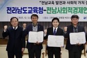 (누리일보) 전라남도교육청과 전남사회적경제기업연합회(전남사회적기업협회, 전남마을기업협의회, 전남자활기업협회)는 12월 5일 전라남도교육청에서 ‘건강한 교육환경 조성 및 지역사회와 상생발전을 위한 업무협약’을 체결했다. 양 기관은 이번 협약을 통해 전남교육 발전 및 사회적 가치 실현을 위해 협력을 강화하기로 했다. 이번 협약을 통해 양 기관은 ▲ 전남사회적경제연합회의 생산품 구매 및 판로 확대 지원 ▲ 지역의 미래와 희망을 만드는 사회적경제 교육 위탁 ▲ 창의적 체험활동 및 직업체험 프로그램 운영 ▲ 인적ㆍ물적 자원 활용에 대한 정보 교환 및 연계 등을 상호 협력해 추진키로 했다. 전남교육청은 이번 협약을 계기로 지역에서 활동하는 전남사회적경제연합회가 교육의 동반자로서 학생들이 지역에서 배우고 성장할 수 있는 협력 모델이 되기를 기대한다. 김대중 전남교육감은 “오늘 협약이 전남교육의 경쟁력을 높이는 중요한 계기로 이어지기를 바란다.”면서 “앞으로도 지역과 함께 성장하는 교육, 사람과 사람을 잇는 따뜻한 교육 실현을 위해 사회적경제연합회와 협력을 강화하겠다.”고 말했다.