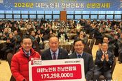(누리일보) 전라남도는 대한노인회 전남연합회가 사회복지공동모금회에 이웃사랑 성금 1억 7천500만 원을 기탁했다고 밝혔다. 7일 무안 스카이웨딩컨벤션에서 열린 2026년 대한노인회 전남연합회 신년인사회에서 진행된 기탁식에는 정광선 전남도 보건복지국장, 김동극 전남사회복지공동모금회 사무처장, 정양수 대한노인회 전남연합회장을 비롯한 22개 시군 지회장 등 200여 명이 참석했다. 기탁된 성금은 대한노인회 전남연합회 시군 지회와 주요 경로당 등 1천600개소에 ‘이웃사랑, 나누면 행복!’ 모금함을 설치, 어르신들이 자율적으로 참여해 모금한 것이다. 22개 시군 저소득층 어르신에게 지원될 예정이다. 정광선 보건복지국장은 “어려운 형편에도 십시일반 뜻을 모아준 어르신들의 나눔 실천에 깊이 감사드린다”며 “소중한 성금은 어려운 지역 어르신께 잘 전달하겠다”고 말했다. 정양수 대한노인회 전남연합회장은 “노인회원들께서 모아주신 따뜻한 정성이 필요한 곳에 잘 쓰이길 바란다”며 “앞으로도 노인회는 ‘어른다운 노인’으로 지역사회 발전에 보탬이 되도록 나눔 활동에 적극 동참하겠다”고 밝혔다.