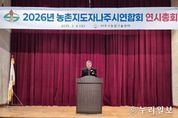(누리일보) 전라남도의회 최명수 도의원(더불어민주당·나주2)은 6일 나주시 농업기술센터에서 열린 ‘나주시 농촌지도자 연시총회’에 참석해 나주 농업의 핵심 리더로서 헌신하고 있는 회원들을 격려하고, 지속 가능한 농촌 발전을 위한 지도자회의 역할을 강조했다. 이날 행사에는 최원섭 전라남도연합회장과 서성호 나주시연합회장을 비롯한 읍면동 회장단, 김해원 나주시의회 농업건설위원장 등 내외 귀빈과 농촌지도자 회원들이 참석해 자리를 빛냈다. 나주시 농촌지도자회는 지난해 영산강 정원 꽃 심기, 마을 환경 정화, 방치 농약 빈 병 수거 등 농촌의 품격을 높이는 활동을 전개하며 탄소중립 실현을 위한 강력한 실천력을 보여주었다. 특히 회원들이 ‘폭염 안전 리더’로서 마을 곳곳에서 펼친 폭염 대응 교육과 예방 활동은 기후 위기 속에서 주민의 생명을 지켜내는 든든한 안전망 역할을 한 것으로 평가받고 있다. 이처럼 지역 농업 발전은 물론 주민의 안전까지 세심하게 살피는 농촌지도자회의 헌신적인 활동은 위기의 농촌을 희망의 농촌으로 바꾸는 강력한 원동력이 되고 있으며, 탄소중립이라는 시대적 과제 해결에 있어서도 농촌 지역의 귀