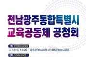 (누리일보) 전라남도교육청 ‘전남광주교육행정통합추진단’과 광주광역시교육청 ‘광주전남교육행정통합실무단’은 ‘전남광주통합특별시 교육공동체 공청회’를 3월 중 두 차례 개최한다. 전남 통합추진단과 광주 실무준비단은 9일 실무 협의회를 통해 ‘전남광주통합특별시 설치를 위한 특별법’ 제정에 따른 전남·광주 통합교육체계 구축을 위한 교육공동체 의견수렴 필요성에 공감하고, 시도민 대상 공청회를 개최하기로 했다. 첫 번째 공청회는 3월 18일 오후 3시 광주광역시교육청 시민협치진흥원에서 열리고, 이어 3월 23일(월) 오후 3시 전라남도교육청순천만생태문화교육원에서 두 번째 공청회가 열린다. 공청회는 지금까지의 교육행정통합과 관련된 추진 경과와 교육행정통합에 대해 교육공동체가 궁금해하는 사항을 양 기관이 설명한 뒤 통합교육체계 구축을 위한 교육공동체의 의견을 청취하는 순서로 진행될 예정이다. 한편, 전남 통합추진단과 광주 실무준비단은 매주 정례적인 협의회를 통해 통합교육체계 구축을 위한 로드맵을 구체화하고 분야별 실무 협의체(전산통합 등)를 구성 운영해 교육행정통합이 차질없이 진행될 수 있도록 할 예정이다. 이를