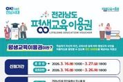 (누리일보) 전라남도와 전남인재평생교육진흥원은 오는 27일까지 저소득층과 장애인을 대상으로 ‘2026 전라남도 평생교육이용권’ 1차 신청을 받는다고 밝혔다. 평생교육이용권은 사회·경제적 여건에 따른 평생교육 참여 격차를 완화하고 교육 기회를 확대하기 위해 교육비를 지원하는 제도다. 연간 1인당 35만 원 상당의 포인트를 충전해 지급하는 방식으로 운영된다. 지원 대상은 전남에 주민등록을 둔 19세 이상 성인과 등록장애인, 65세 이상 노인, 디지털 평생교육 수강 희망자 등이다. 1차 모집은 저소득층과 등록장애인이 대상이며, 오는 4월 노인과 디지털 평생교육 수강 희망자, 일반 도민을 대상으로 추가 접수를 진행할 계획이다. 이용권 신청은 전남도 평생교육이용권 누리집(저소득층 대상)과 보조금24(등록장애인 대상), 각 시군 평생교육 담당 부서에서 할 수 있다. 선정자는 NH농협 채움카드를 통해 포인트를 지급받아 8월 31일까지 전국 평생교육기관에서 사용할 수 있다. 전남에는 평생교육이용권 사용기관 148곳이 등록됐으며, 평생교육이용권 누리집과 전남인재평생교육진흥원 누
