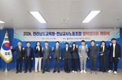 (누리일보) 전라남도교육청과 전남교사노동조합은 3월 31일 청사 중회의실에서 ‘2026년 정책협의회 개회식’을 갖고 교육 현안에 대한 해법 모색에 나섰다. 이번 정책협의는 교사의 교육활동을 보호하고 학교 현장의 요구를 정책에 반영해 보다 실효성 있는 교육환경을 조성하고, 노사 간 상생과 협력으로 지역과 세계가 공생하는 글로컬 전남교육을 실현하기 위해 마련됐다. 노·사 양측은 이번 정책협의에서 ▲ 교사 근무여건 개선 및 본질업무 회복 ▲ 교육활동 보호 ▲ 학교행정업무경감 ▲ 학생생활지도 개선 ▲ 학교 교육 환경 개선 등 현장의 요구를 반영한 54개 항목을 집중 협의한다. 전남교육청은 노사 협의를 통해 도출된 합의안을 정책에 반영해 단계적으로 추진할 계획이다. 또한 지속적인 협의를 통해 교육 현장의 의견을 반영하고 실질적인 변화를 이끌어 갈 방침이다. 전라남도교육청 대표위원 김대중 교육감은 “이번 정책협의회를 통해 현장의 목소리를 반영한 정책으로 교사가 교육에 전념할 수 있는 교육 환경을 만들겠다.”면서 “학생 중심 교육 실현을 위해 지속적으로 소통을 강화하겠다.”고 밝혔다.