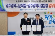 (누리일보) 광주시교육청은 31일 본청 상황실에서 광주광역시경찰청과 이정선 교육감과 김영근 광주경찰청장 등이 참석한 가운데 ‘학교폭력 예방 및 청소년 선도·보호’를 위한 업무협약을 체결했다. 이번 협약은 시교육청-광주경찰청의 협력체제 구축 및 공동대응을 위해 마련됐다. 이번 협약에 따라 두 기관은 ▲학교폭력 및 청소년 범죄 예방 및 대응에 관한 사항 ▲청소년 선도 및 보호 활동에 관한 사항 ▲양 기관 사업에 대한 상호 홍보 및 정보 공유에 관한 사항 ▲기타 양 기관의 교류 및 협력에 관한 사항 등을 협력한다. 또 연말까지 ▲소년범 상담특화 프로그램 ▲학교폭력∙청소년 범죄 예방(청소년 도박, 사이버 폭력 포함) 퀴즈 대회 ▲청소년 절도 예방 캠페인 및 합동 순찰 ▲찾아가는 학교폭력 예방교육 등을 실시할 예정이다. 이정선 교육감은 “학교폭력 예방 및 청소년 선도∙보호는 교육기관과 지역기관의 유기적 협력이 매우 중요하다”며 ”모든 광주 학생이 학교폭력과 청소년 범죄로부터 안전하고 행복할 수 있도록 광주경찰청과 함께 적극 나서겠다”고 말했다.