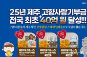 (누리일보) 제주특별자치도는 올해 고향사랑기부금이 4일 기준 전국 최초로 단년도 40억 원(40억 700만 원, 3만 9,454건)을 넘어섰다고 밝혔다. 이는 전년 동기 대비 모금액 114%(19억 원 → 40억 원), 모금 건수 134%(1만 6,871건 → 3만 9,454건) 증가한 수치로, 제주 고향사랑기부제가 시행 3년차에 접어든 올해도 독보적 성장세를 이어가고 있다. 제주도는 2023년 18억 원(모금 건수 전국 1위)으로 전국 2위, 2024년 36억 원으로 전국 1위를 기록했으며, 올해도 12월 초 40억 원을 넘어서며 선도 지자체로 자리매김했다. 이러한 성과는 △철저한 답례품 품질관리 △전국 최초 기부자·연속기부자 예우정책 △제주 가치 보존 기금사업 확대 등 차별화 전략이 주요 요인으로 분석되고 있다. 제주도는 지역 특산물 중심의 고품질 답례품 발굴과 신속 배송, 민원 대응 강화로 기부자 만족도를 높이고 있으며, 제주경제통상진흥원과 협업해 모니터링 체계를 고도화하는 등 답례품 관리의 전문성을 강화하고 있다. 11월 13일부터 답례품으로 연말 한정 ‘스페셜 감귤 패키지’ 3
