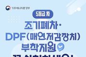 (누리일보) 5등급 차, 조기폐차·DPF(매연저감장치) 부착지원 꼭 신청하세요! - 올해가 마지막 ■ 5등급 차량 소유자라면? 조기 폐차 지원, DPF(매연저감장치) 부착 지원 2026년 종료 ※ 2026년 내 신청 필수! 올해가 지나면 지원 종료 ■ 4등급 경유차 소유자라면? 조기 폐차 후 전기·수소·하이브리드 차량 구매 시에만 차량가액 100% 지원 ※ 그 외 경우는 70%만 지원 ■ 혜택 더하기 조기 폐차 후 전기차 구매 시 기존 전기차 보조금에 더해 전환지원금 지원 ※ 전환지원금은 등급 구분없이 지원 가능 ■ 자세한 사항은 여기서! '내차 종합 정보'에서 배출가스 등급 조기폐차 지원금 확인! ☞ 자동차 배출가스 종합전산 시스템 - 내차 종합 정보조회 결과, 마이카 이지체크에서 세부내역 확인 미세먼지 없는 하늘을 위해 다함께 만들어나가요.