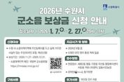 (누리일보) 수원특례시는 2월 27일까지 ‘2026년 군소음 피해보상금’ 신청을 받는다. 신청 대상은 2020년 11월 27일부터 2025년 12월 31일까지 수원시 소음대책지역에 주민등록을 두고 실제 거주한 주민이다(외국인 포함). 소음대책지역은 국방부 군소음포털에서 확인할 수 있다. 2월 27일까지 신청해야 한다. 정부24 홈페이지, 현장 방문, 등기 우편 중 한 가지 방법을 선택해 신청하면 된다. 현장 신청은 세류2동·평동·구운동·곡선동 행정복지센터와 서둔동 커뮤니티센터(권선구 서호로 138), 탑동시민농장(권선구 서둔로 155)에서 평일 오전 9시부터 오후 5시까지 할 수 있다. 1월 13일까지는 출생 연도 끝자리 기준 5부제를 적용한다. 월요일은 1·6, 화요일 2·7, 수요일 3·8, 목요일 4·9, 금요일 5·0 해당자가 신청할 수 있다. 온라인 신청은 정부24 홈페이지에서 ‘군소음’을 검색해서 할 수 있다. 소급 보상을 원하는 주민은 과거 연도별로 각각 추가 신청해야 한다. 등기 우편 신청은 ‘수원시 팔달구 효원로 241, 수원시청 공항이전추진단 군소음보상팀’