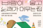 (누리일보) (재)김포문화재단은 연말연시를 맞아 가족의 온기와 새해의 희망을 담은 하반기 기획전시 '바람이 닿고 노래가 머무는 집'을 12월 20일부터 2026년 3월 6일까지 김포아트빌리지 한옥마을 창작 3·4·5동에서 개최한다고 밝혔다. 이번 전시는 ‘집’이라는 상징을 통해 한 해를 성찰하고 다가올 새해의 행복을 기원하는 시민참여형 전시로, 공현진·오상훈·한경희 작가가 조각, 패브릭, 미디어, 설치 작업을 선보인다. 이번 전시에서 세 명의 작가는 동시대 예술의 언어로 새로운 한해, 새로운 여정을 준비하는 이들에게 서로 다른 방식의 머무름을 건넨다. 공현진 작가는 한국의 무속과 민간신앙을 바탕으로 새해를 맞이하는 마음을 조각에 담아 전통과 현재를 이어내는 새로운 기원의 자리를 마련한다. 오상훈 작가(문화지형연구소 씨티알)는 각자가 지닌 걱정을 털어놓고 서로 교환하며 위로를 얻는 참여형 작업 '걱정교환소'를 소개한다. 한경희 작가는 실과 천 조각들을 이어붙여 겹치고 얽힌 천의 질감 속에서 자연의 풍경을 떠올리며 놀이처럼 즐기는 감각적 체험을 제공한다. 한편, 이번 전시에는 전시 감상을 넘어 시민이 직접 참여하고